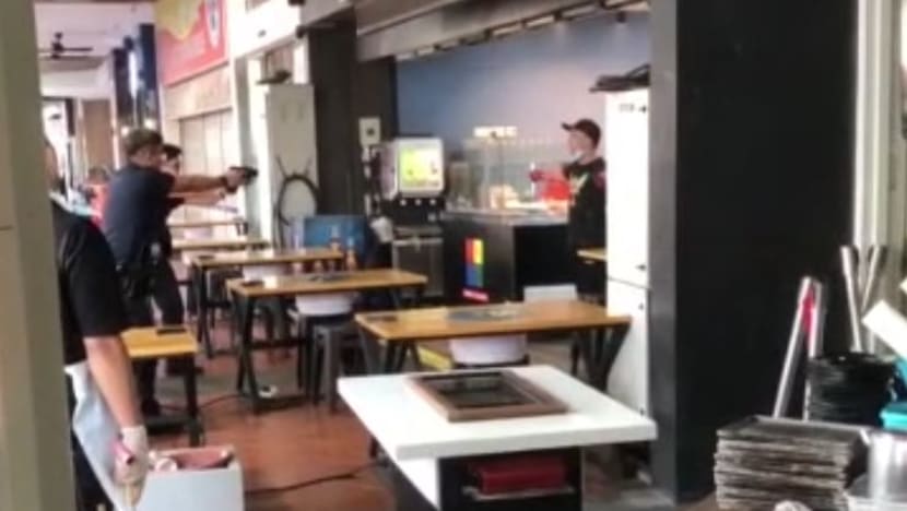 Footage of the incident showed the man wielding a chopper at 75 Beach Road on Apr 14, 2022.