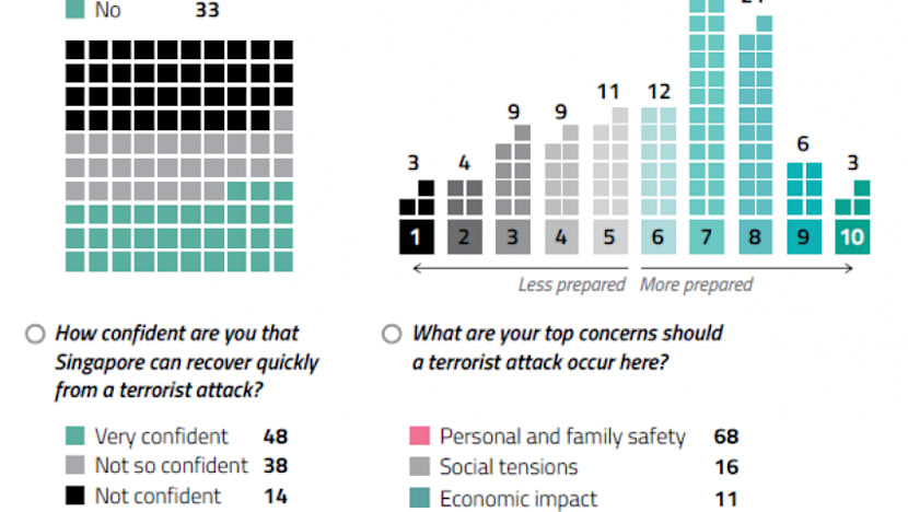 In the event of a terrorist attack here, student Dennis Soh, 26, was among many respondents who cited the safety of their loved ones as a top concern. “Human beings naturally want their family members to be safe, and other than that, everything else is secondary,” he said.