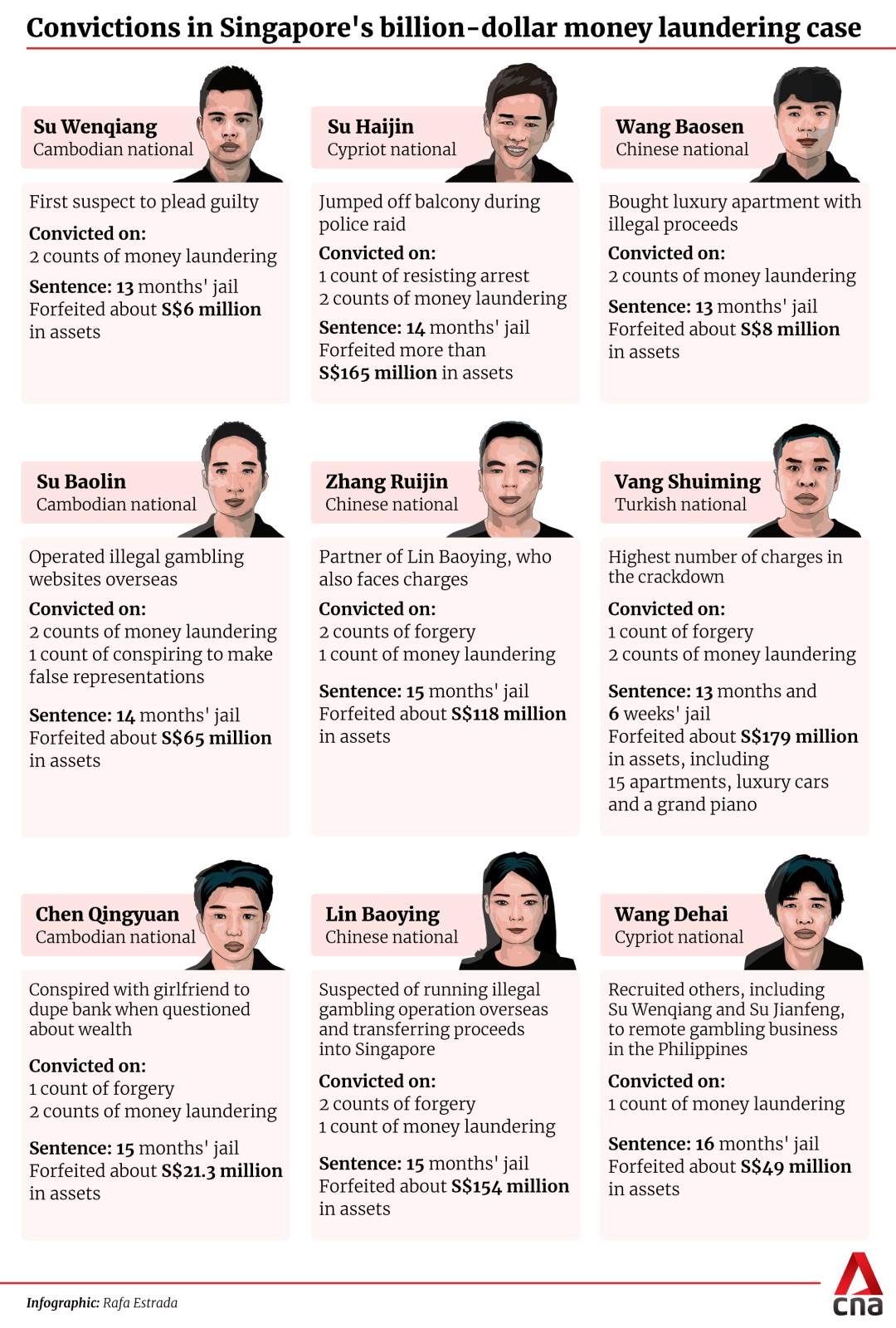 Unlike the other accused, Wang did not face any forgery charges, and had not transferred money through corporate intermediaries, said Ms Chia.