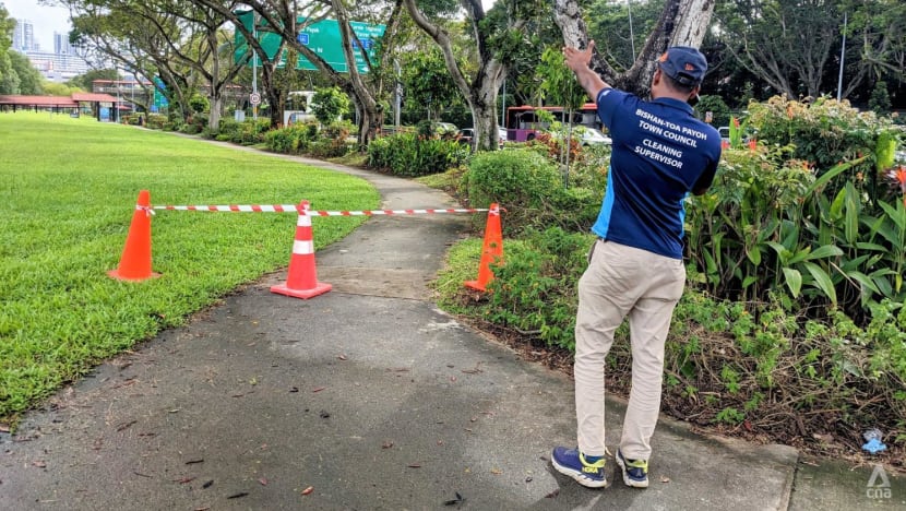 When CNA visited the area at about 4.30pm on Wednesday, a section of the pathway along Bishan Road was closed temporarily by Bishan-Toa Payoh Town Council staff members.