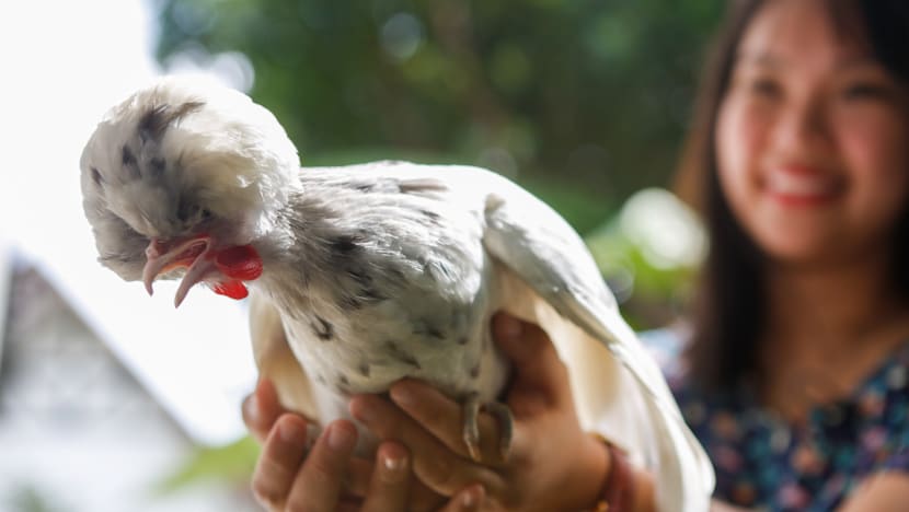 Ms Jayce Ho, who manages the account @sgpolishchicken, lives with her parents, seven chickens, a duck and a dog in their semi-detached house.