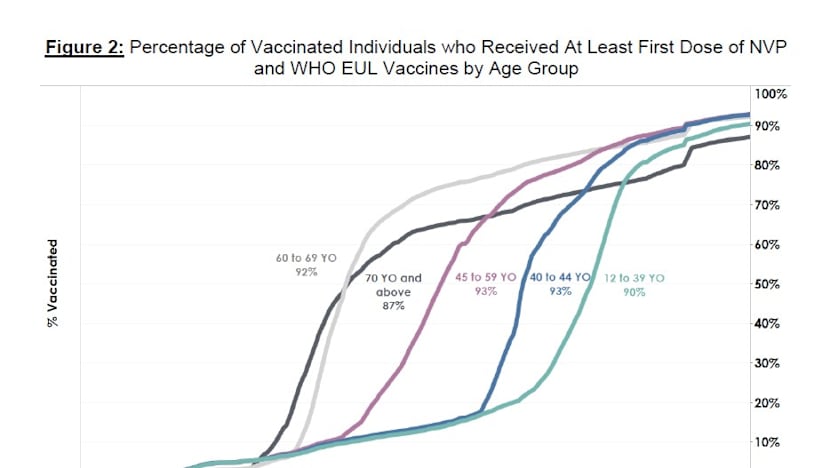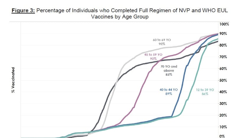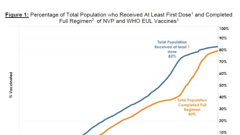 As of Aug 28, 80 per cent of the population had completed their full regimen or received two doses of Covid-19 vaccines, and 83 per cent had received at least one dose.