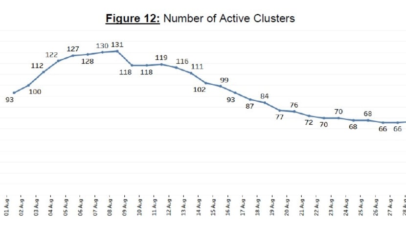 One active cluster has closed and there are now 67 active Covid-19 clusters here, each having between three and 1,155 cases.