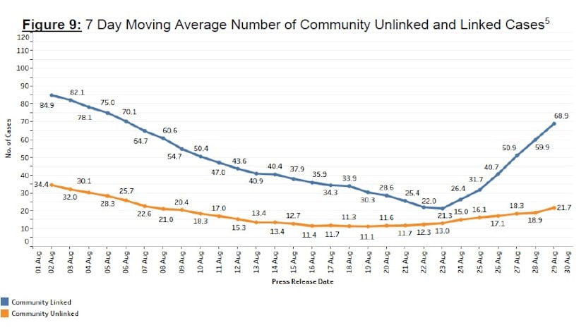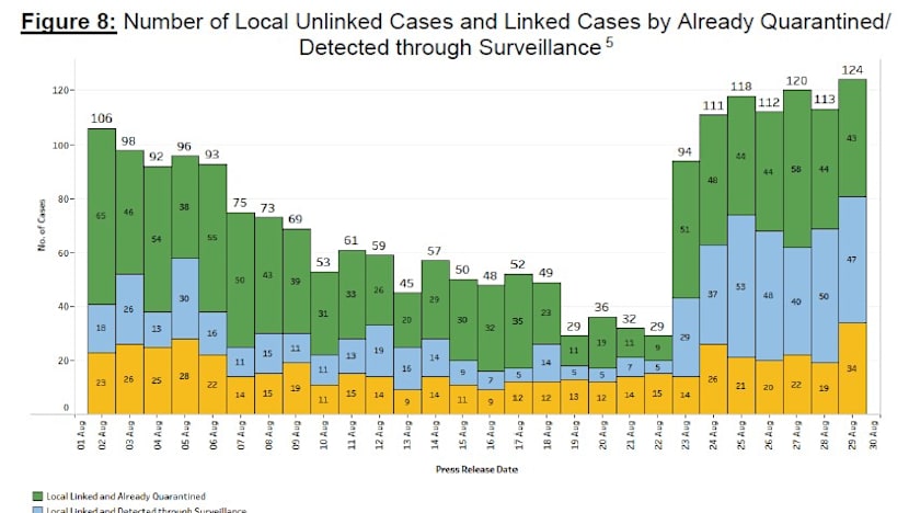 The number of cases with no known links in the community has also risen from 86 in the week before to 152 in the past week.