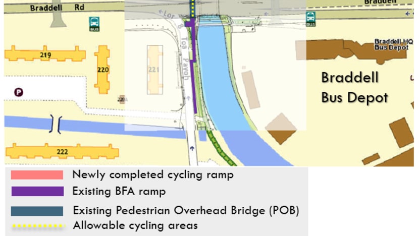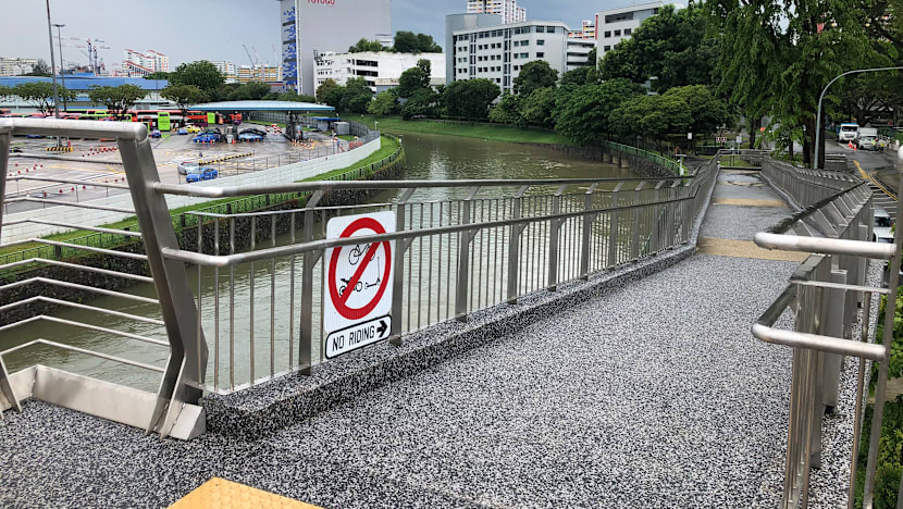 In November, a new curved ramp north of Braddell Road was opened where cycling is allowed. The south side of the bridge, however, still has a barrier-free access ramp, and cyclists will still have to dismount and push their bikes.