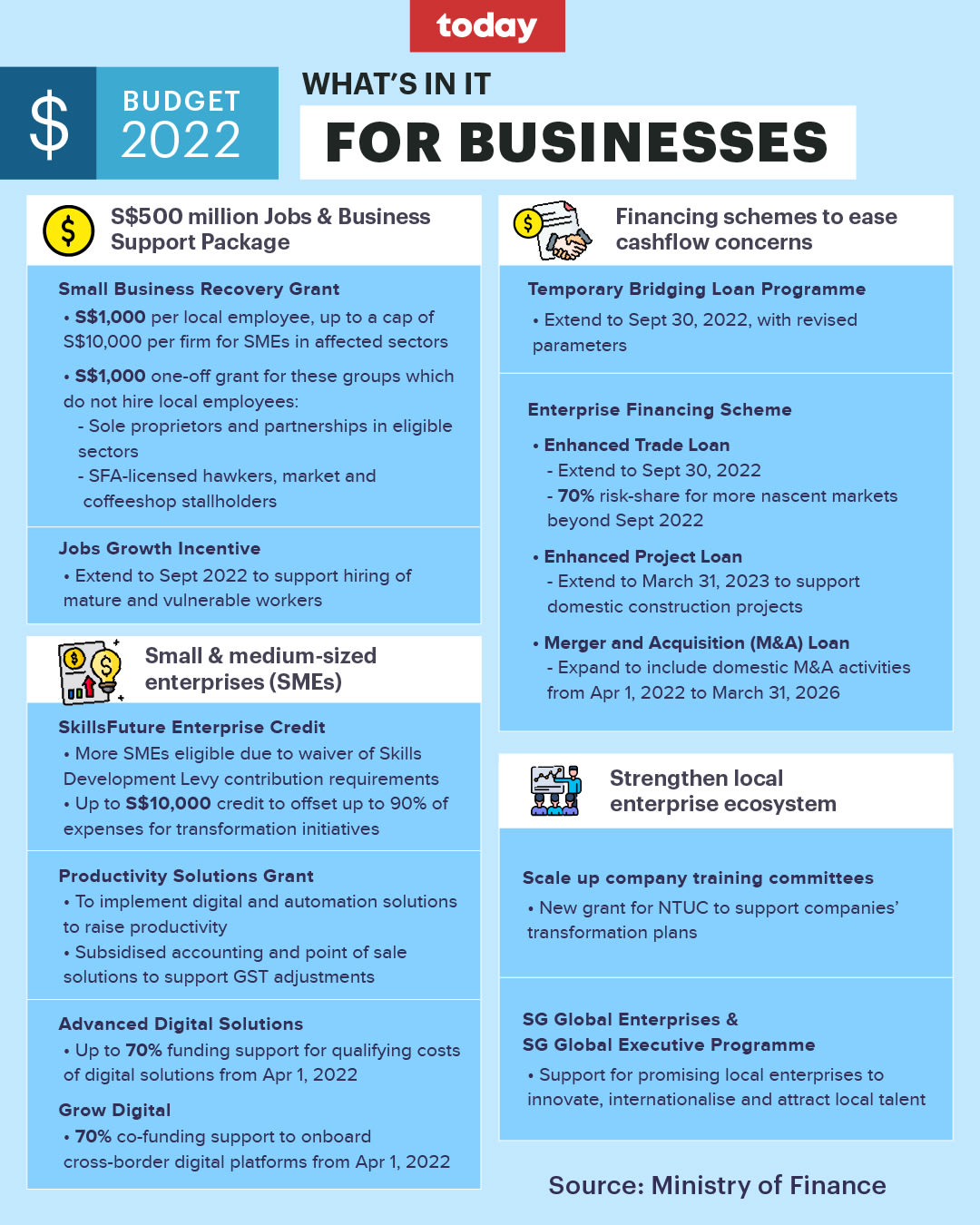 Budget 2022: S$500m immediate relief for businesses, including one-off cash payout for SMEs worst hit by Covid-19 curbs
