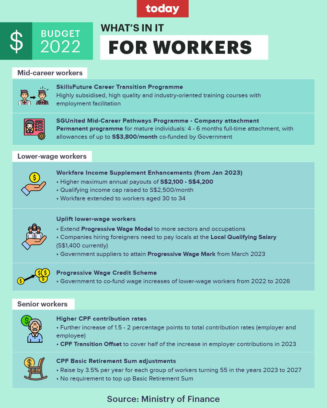 Budget 2022: Younger workers eligible for Workfare, higher CPF basic retirement sum among moves to strengthen social compact