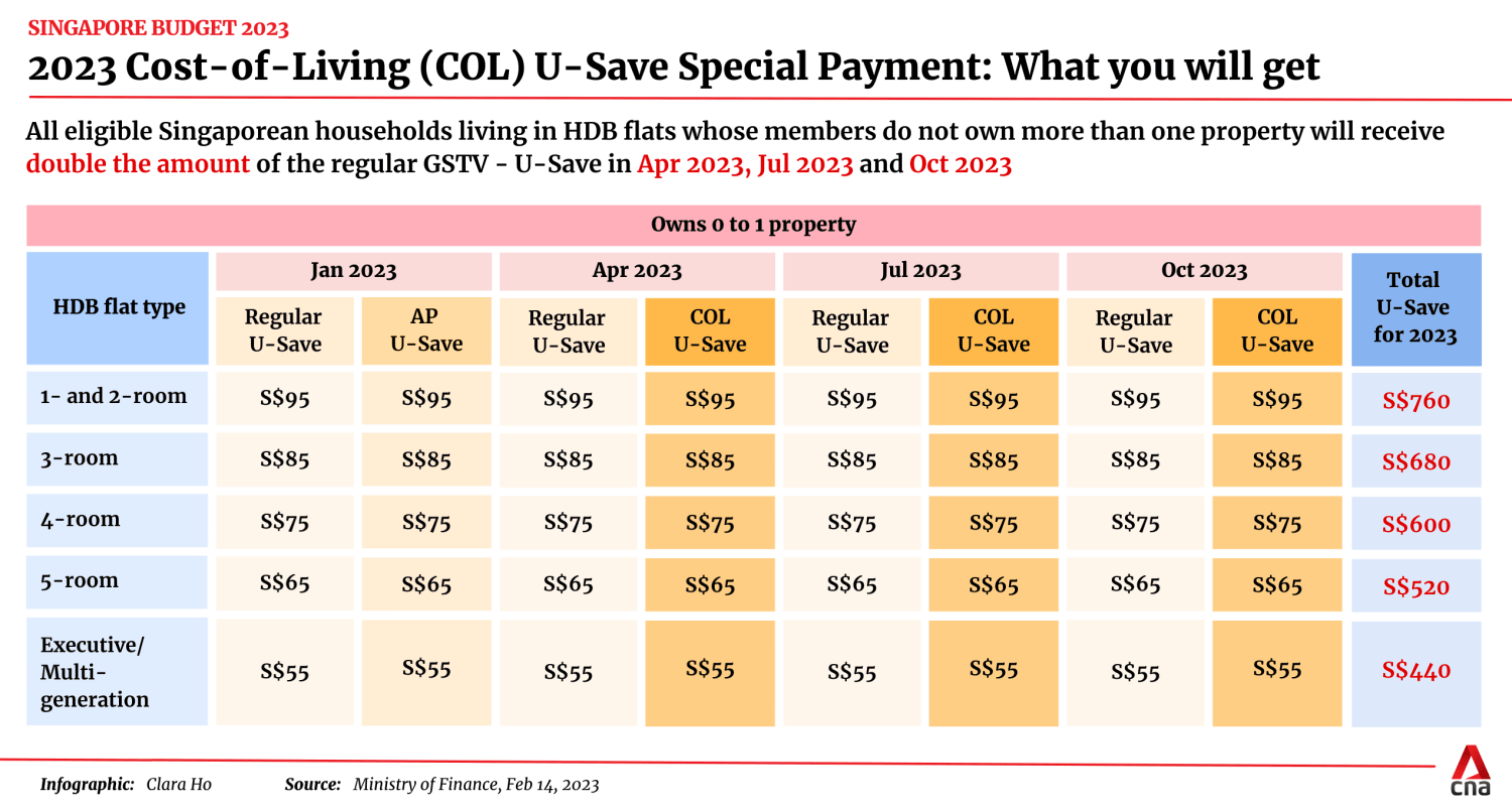 Together with the Assurance Package U-Save rebate disbursed in January, this will double the amount of regular U-Save rebates received in 2023.