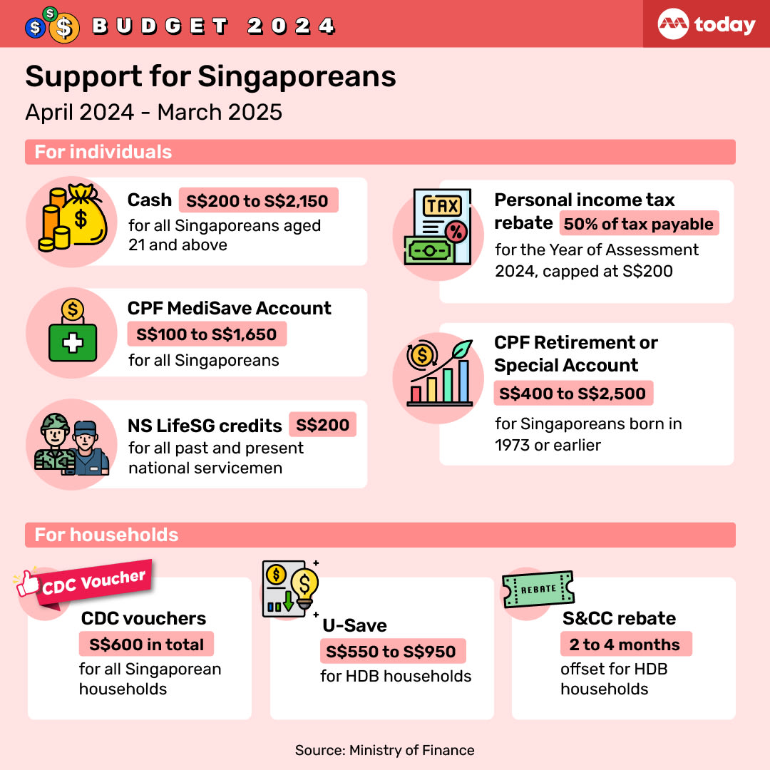 Singaporeans aged 21 and above this year will receive a one-off cash support of between S$200 and S$400 in September 2024.