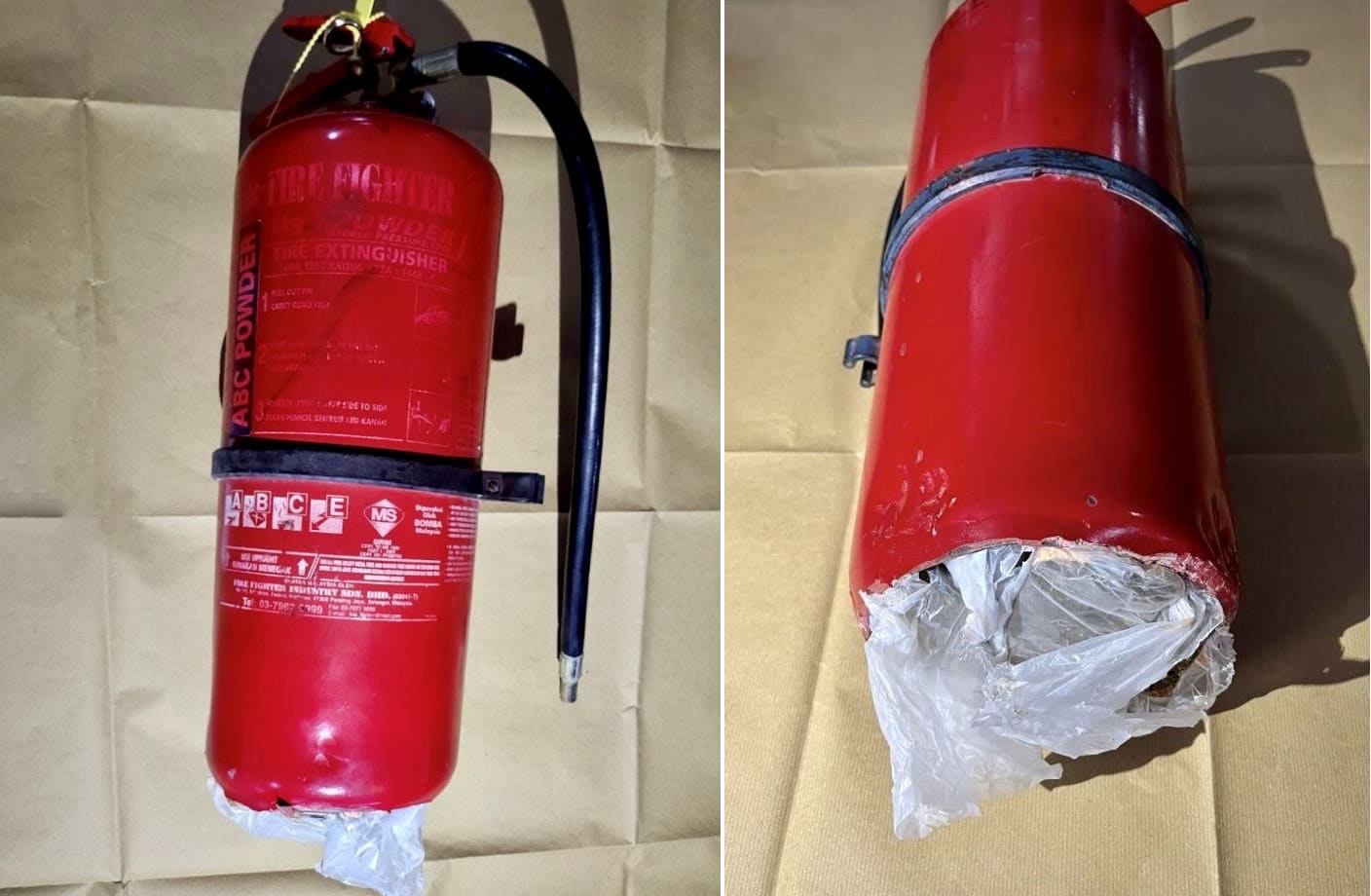 About 4,517g of cannabis was concealed inside one of the fire extinguishers.