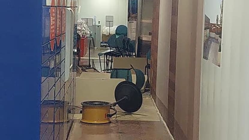 Mr Fauzul Hakim, who works in the building, said he saw broken glass on the right side of the entrance.