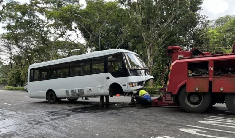 Workers were preparing to tow the bus at about 1pm. There was a slight jam at the time, with only one lane accessible for an approximately 100m stretch.