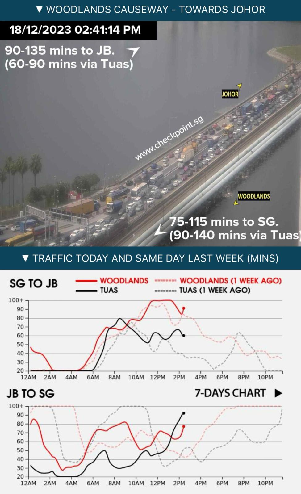 Factor in buffer time for any potential delays. In addition to increased traffic flow across the Woodlands and Tuas checkpoints, security measures have also been stepped up in view of the situation in the Middle East.
