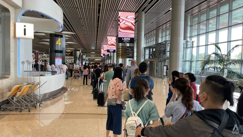 Long queues were seen in the departure areas at Changi Airport's terminals.