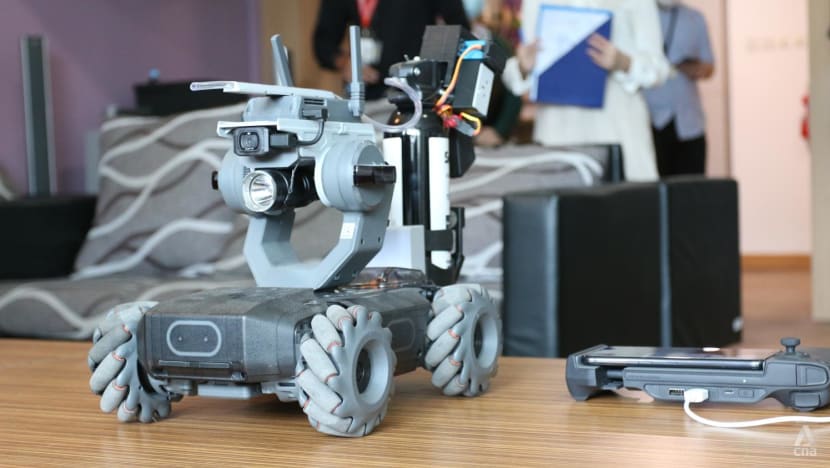 Supt Teh revealed that the unit is also testing a robot that can send back live video as well as spray irritants and emit distracting light and sound to respond to security incidents in lockdown scenarios.