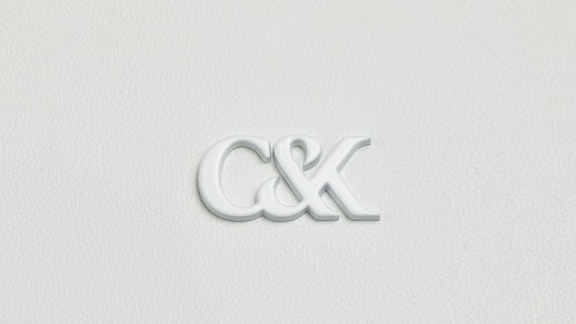 Compared to its original logo, the redesign uses a slightly blockier font with a much narrower kerning. The emblem, which the brand has named L'initial, uses a serif font for its initials with the "C", "K" and ampersand characters flowing into one another.