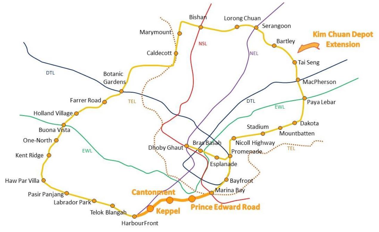 This comprises three underground stations — Keppel, Cantonment and Prince Edward Road — closing the loop between HarbourFront and Marina Bay stations. This means commuters will be able to get a direct line from Telok Blangah to Marina Bay, for instance, saving about 10 minutes of travel time.