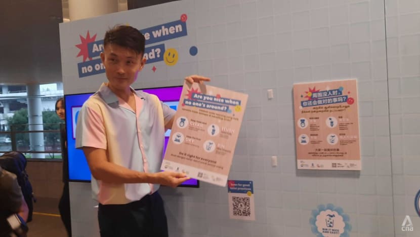 Speaking to the media at One Punggol Hawker Centre, Mr Baey said that the campaign is based on encouraging people to do the right thing even when they are not being watched.