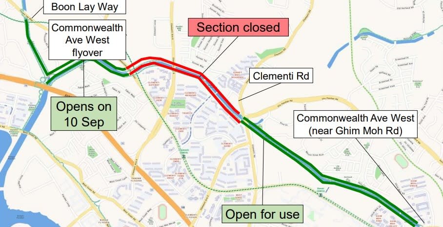 The section that reopens on Saturday stretches from Boon Lay Way and the Ayer Rajah Expressway to the Commonwealth Avenue West flyover, which are downstream of the park connector.