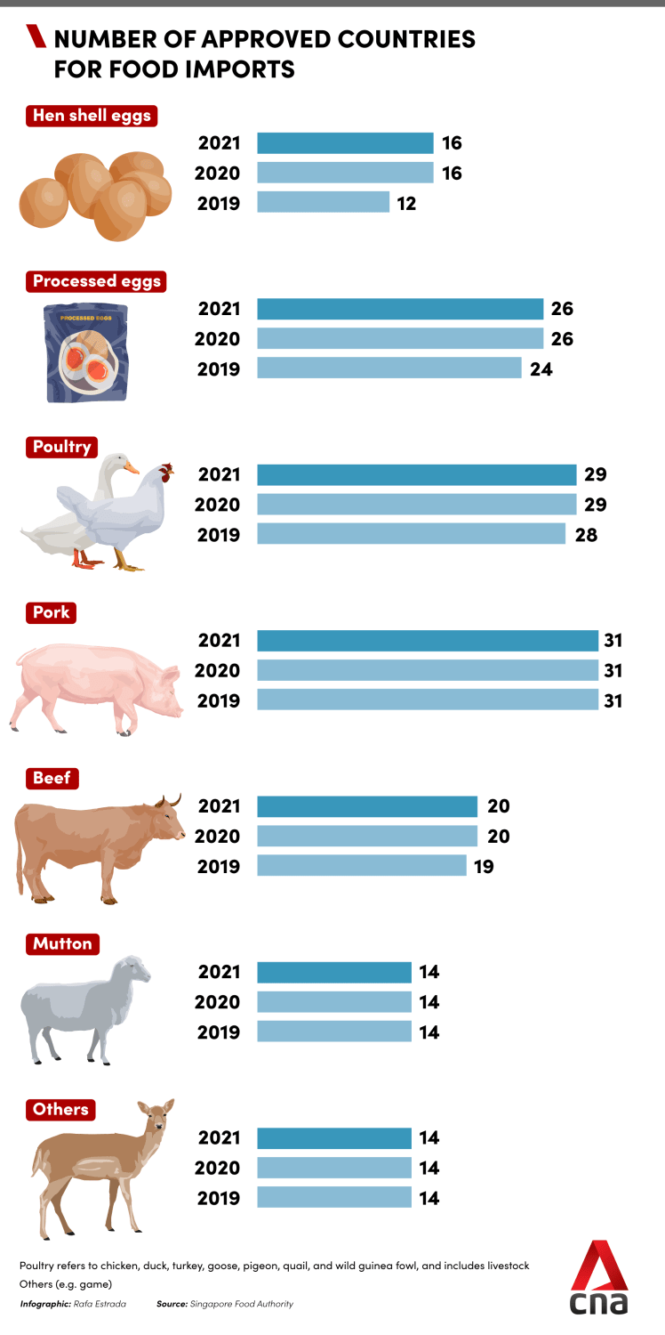 Up to 40 countries are allowed to export high-risk food items to Singapore, after meeting SFA’s requirements on food safety and public health.