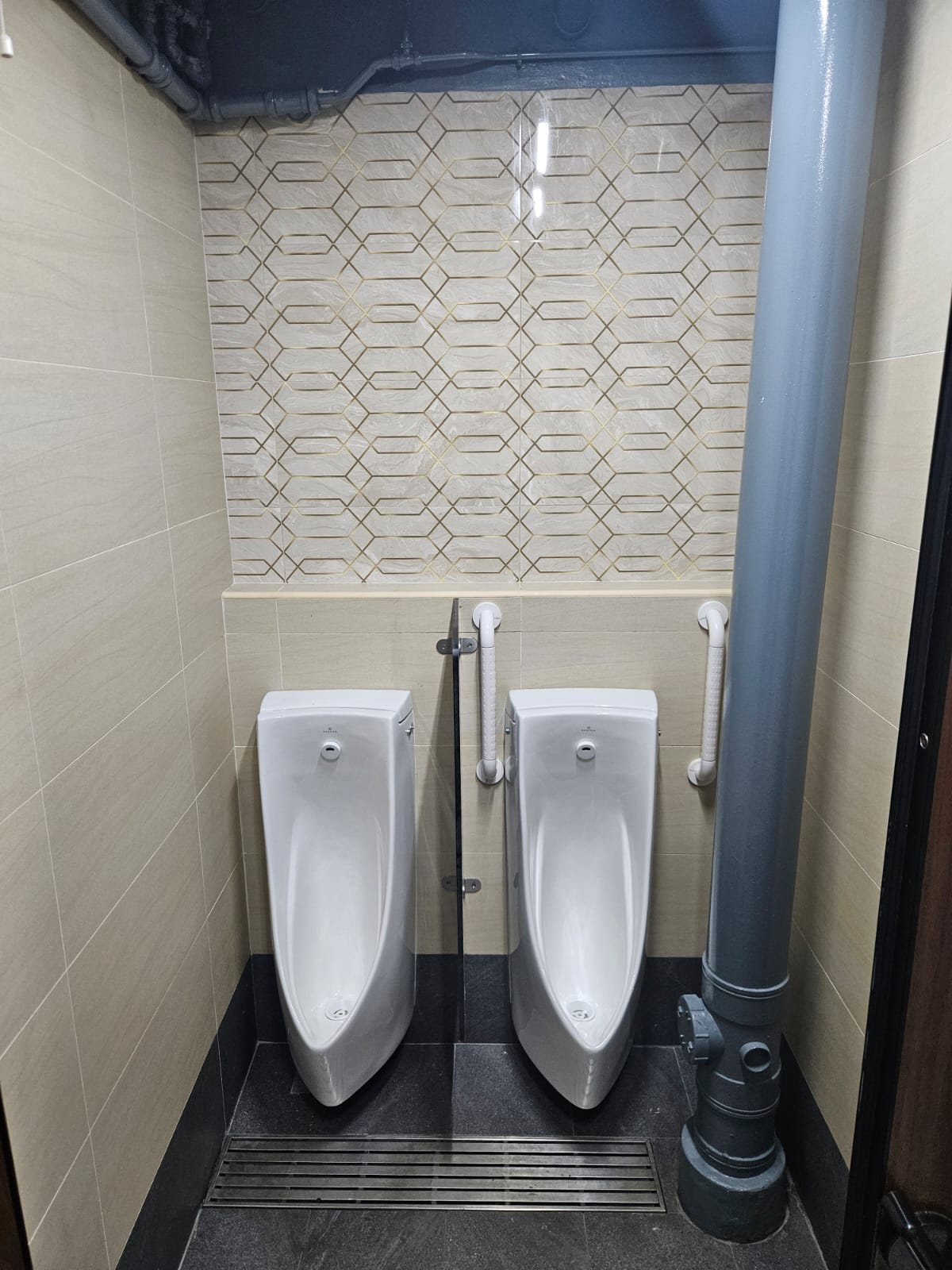The toilet now has sensor taps, full-length urinals in the men’s stall and new fixtures throughout.
