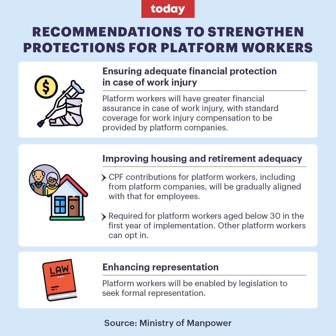 The committee also said that platform companies that exert "significant level of management control over platform workers" should provide CPF contributions at the same rates as employers.