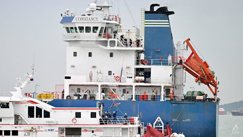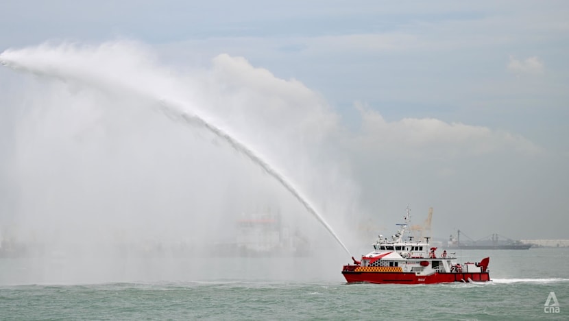 Two SCDF vessels approached the ship, and one doused the “fire” with a water cannon.