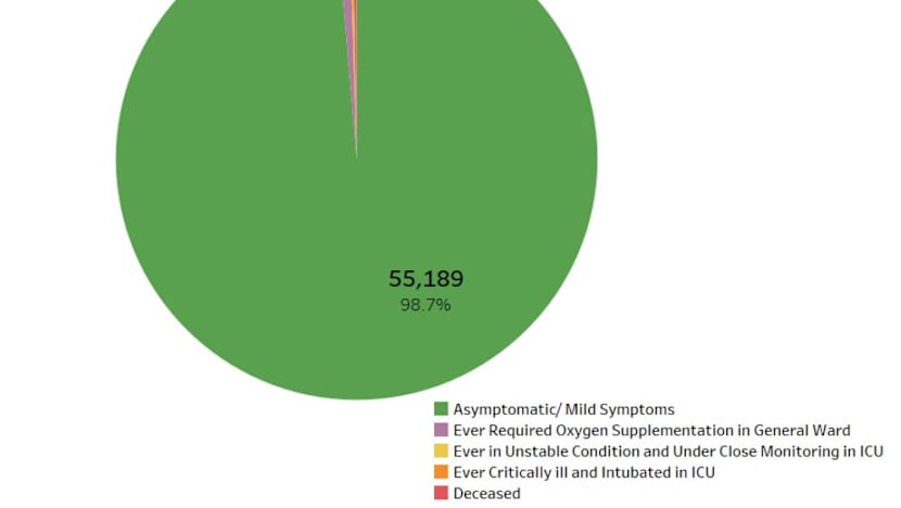 Over the last 28 days, the proportion of local coronavirus cases who had mild or no symptoms was 98.7 per cent, MOH said. During the same period: