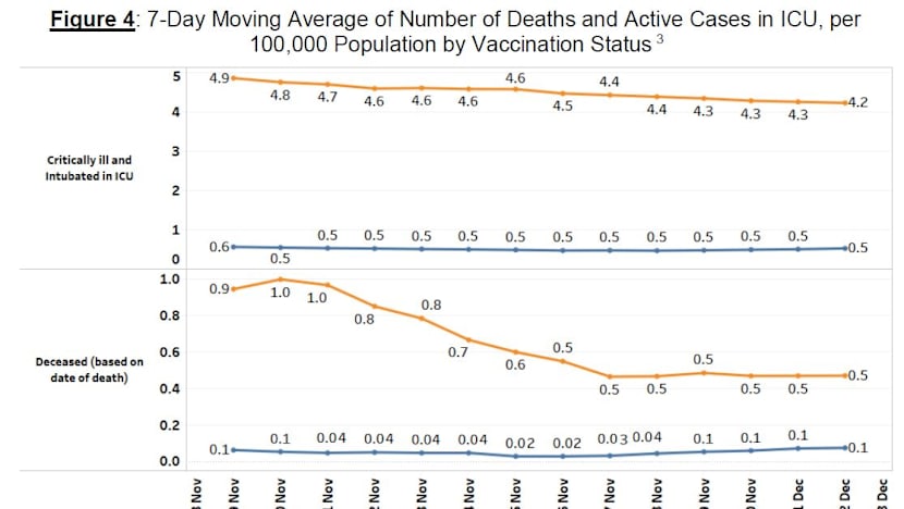 - The number of fully vaccinated patients who were critically ill in ICU was at 0.5 per 100,000 people and for non-fully vaccinated patients, it was 4.2