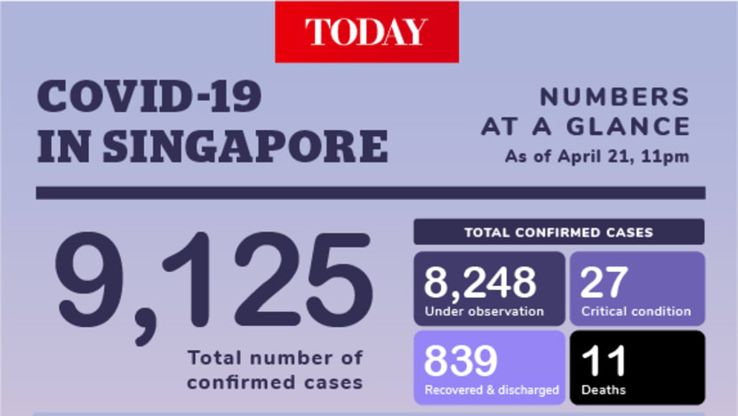 SINGAPORE — The Ministry of Health on Tuesday (April 21) announced 1,111 new cases of Covid-19 in the country, bringing the total number of infections here to 9,125.
