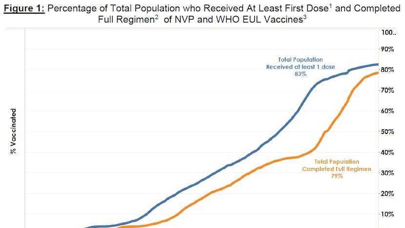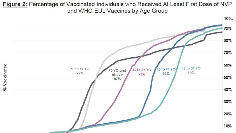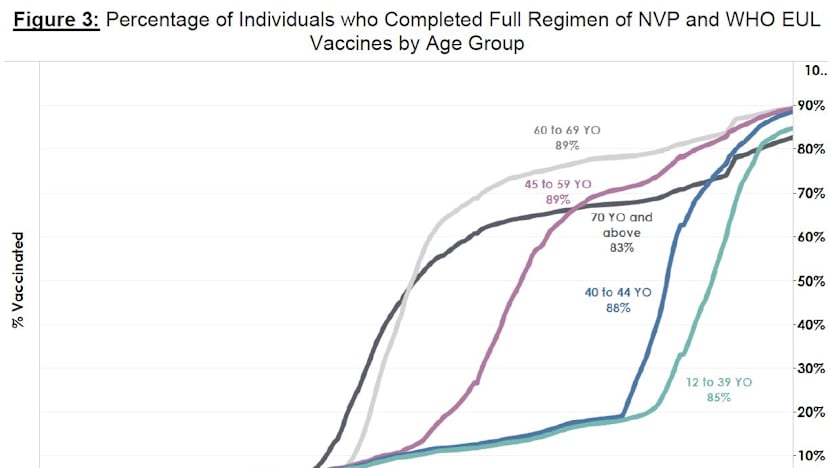 As of Aug 25, 79 per cent of the population had completed their full regimen or received two doses of Covid-19 vaccines, and 83 per cent had received at least one dose.