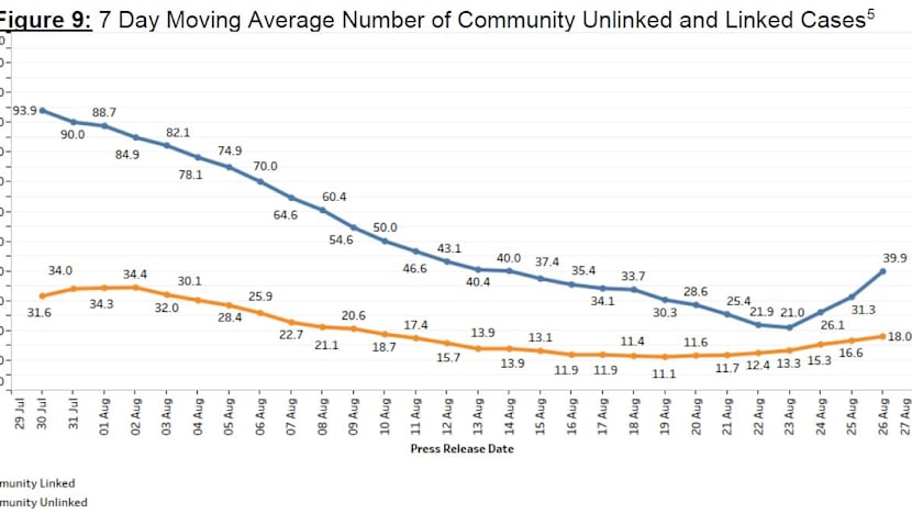 The seven-day moving average number of all linked community cases and all unlinked community cases are 39.9 and 18.0 respectively.