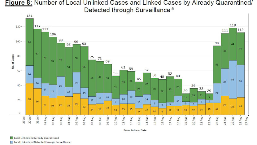 SINGAPORE — There were 112 new locally transmitted cases of Covid-19 reported on Thursday (Aug 26), including 24 that were not linked to earlier infections.
