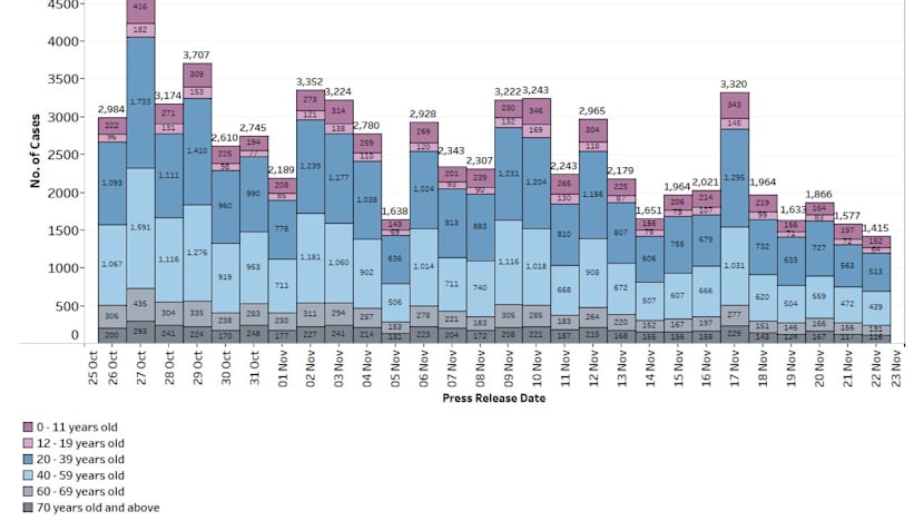 - There were 1,461 new Covid-19 cases in Singapore on Nov 22