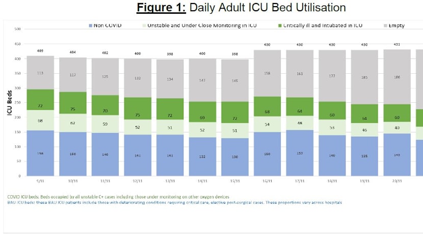 The overall ICU utilisation rate stands at 53.5 per cent, up from 52.9 per cent on Sunday.