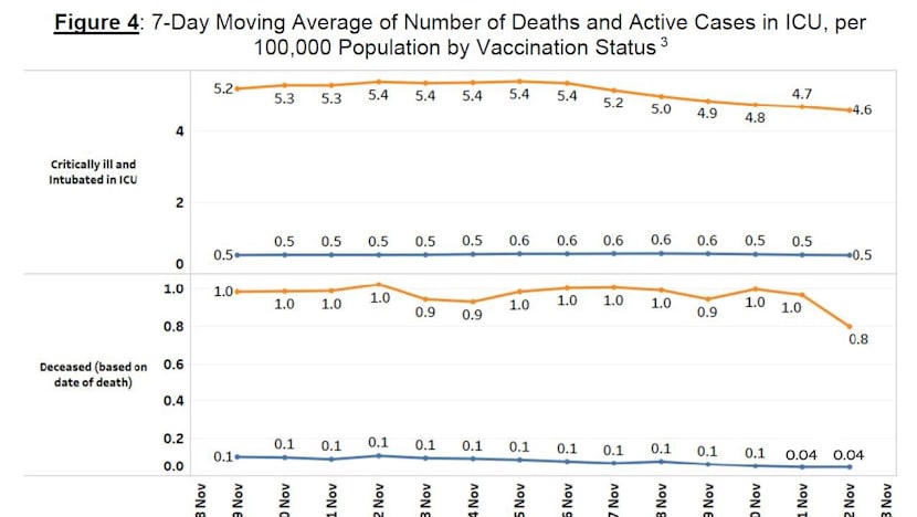 - The number of fully vaccinated patients who were critically ill in ICU was at 0.5 per 100,000 people and for non-fully vaccinated patients, it was 4.6