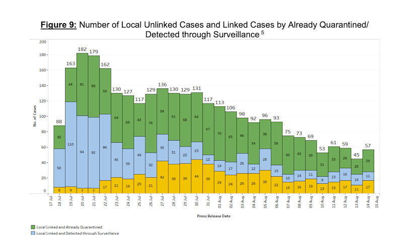 The number of cases with no known links in the community has also dropped to 101 from 166 over the same period.