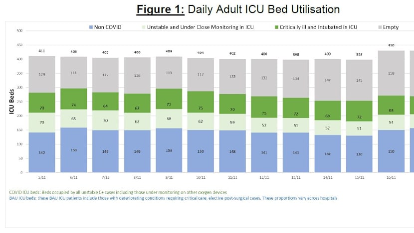 - There are 430 ICU beds, of which 253 are now occupied, including 113 by Covid-19 patients