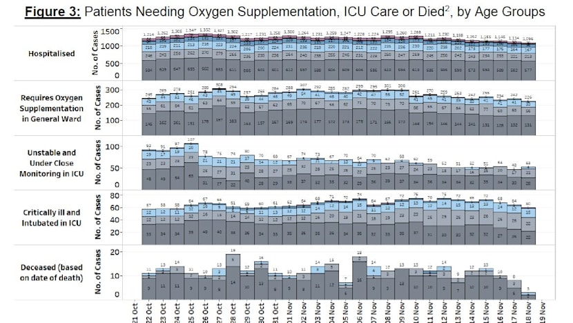 - For fully vaccinated patients aged 60 and above, the number who were critically ill under intensive care was 2.0 and for those not fully vaccinated, it was 44.4