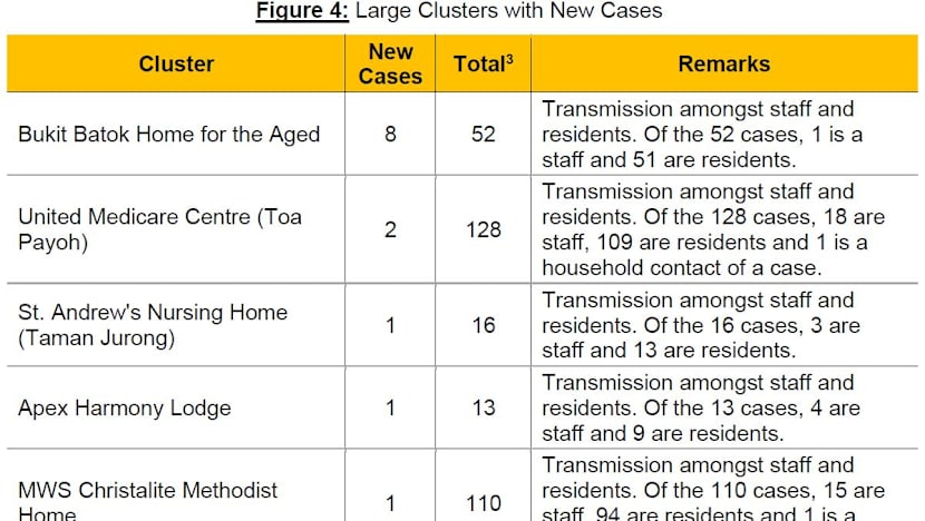 Among large clusters that are being closely monitored by the ministry, six had new cases, MOH said on Monday. This was one more cluster with new cases compared to Sunday.