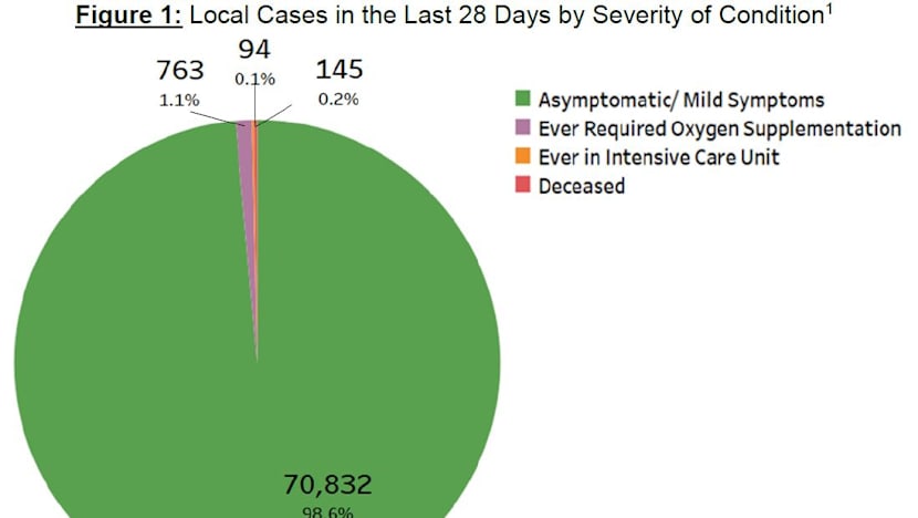 MOH said that over the last 28 days, the percentage of local cases who had mild or no symptoms is 98.6 per cent.