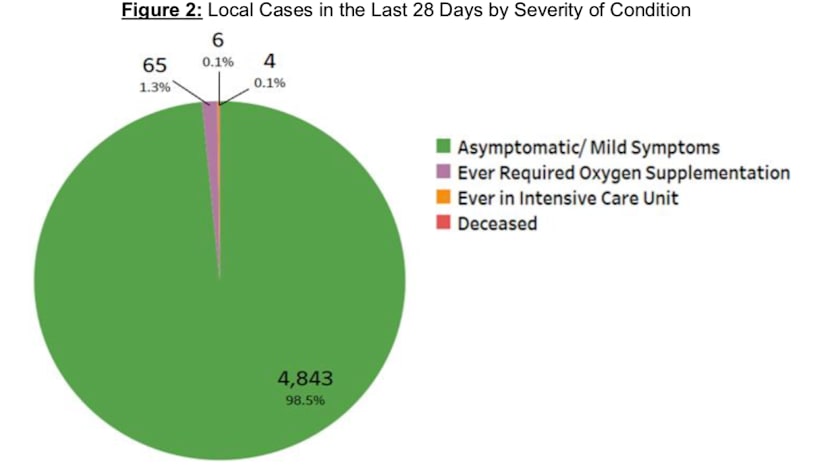 Over the last 28 days, the percentage of local cases who were asymptomatic or had mild symptoms is 98.5 per cent.