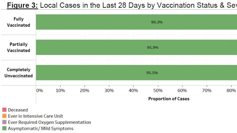 Over the last 28 days, the percentage of unvaccinated who became severely ill or had died is 4.5 per cent, while that for the fully vaccinated is 0.7 per cent, MOH said.