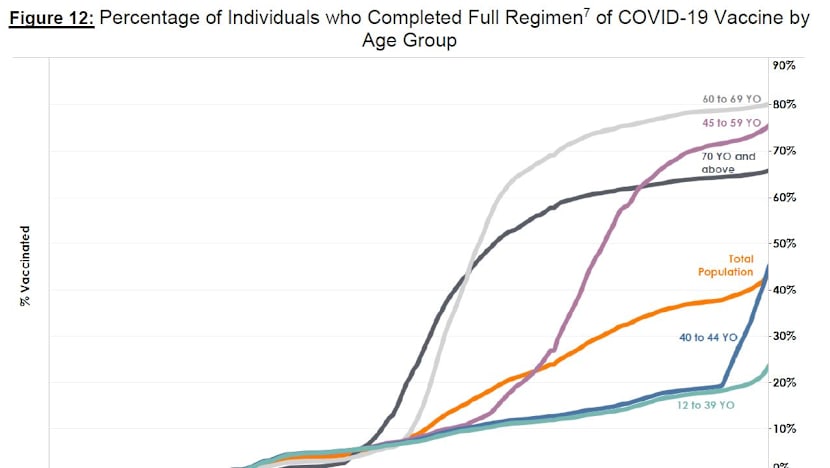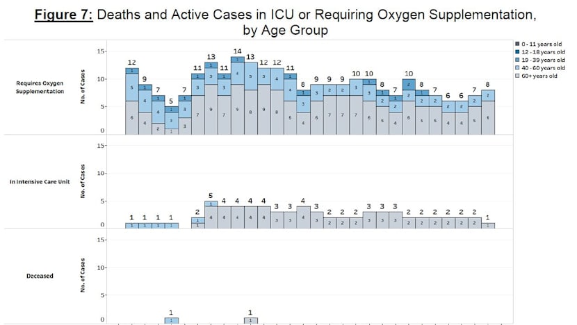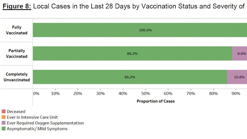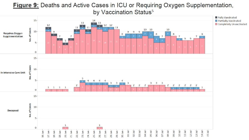 “Over the last 28 days, 18 local cases required oxygen supplementation, were admitted to intensive care units or died. Fourteen are unvaccinated, four are partially vaccinated and none are fully vaccinated.”