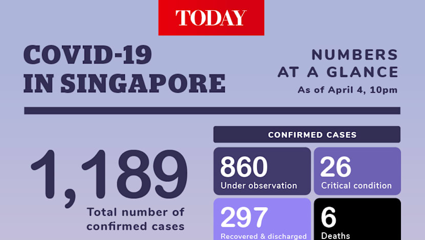 SINGAPORE — The Ministry of Health (MOH) announced 75 new cases of Covid-19 in Singapore on Saturday (April 4), bringing the total number of infections here to 1,189.