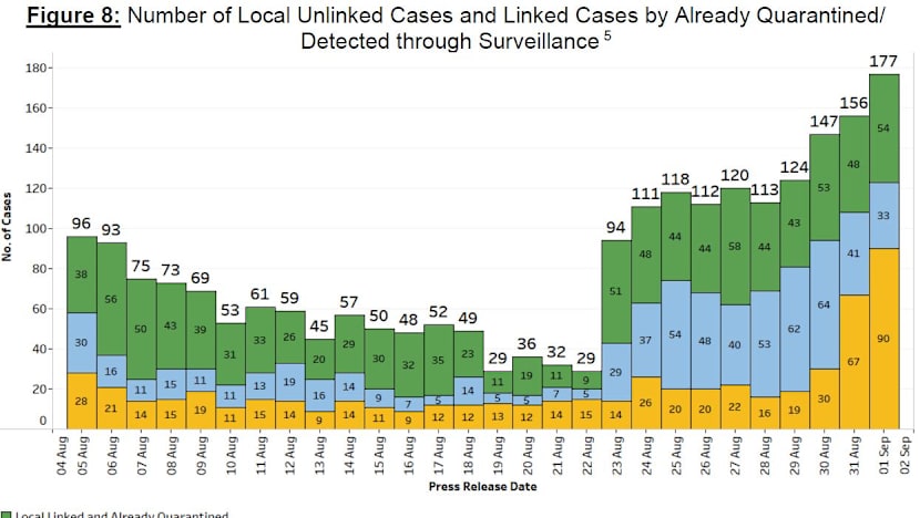In its nightly update on the coronavirus situation here, MOH said that there were 177 new locally transmitted cases of Covid-19, including 90 that are not linked to earlier infections.