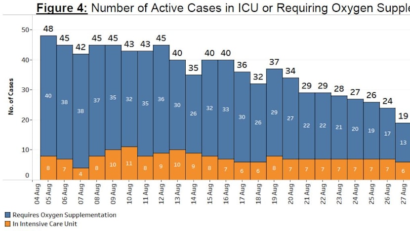 Data from MOH showed that the number of patients under intensive care has remained constant at five since Aug 30.