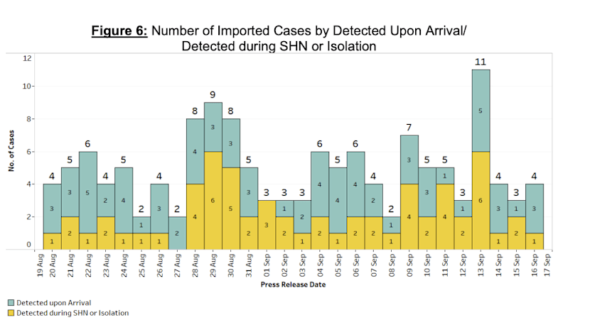 For the imported cases, three were detected upon arrival in Singapore and one had the infection while isolated.