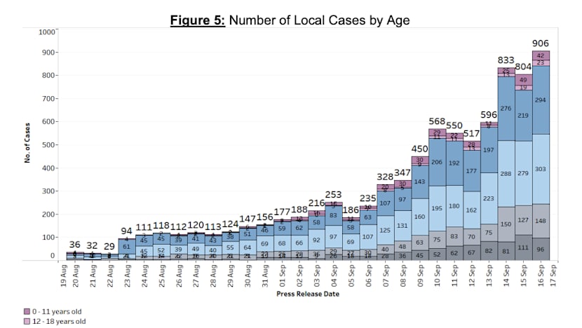 Of the 906 locally transmitted cases, 103 were linked to migrant workers staying in dormitories and 244 are seniors over the age of 60.