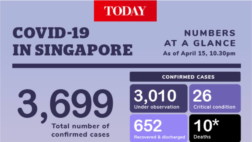 SINGAPORE — The Ministry of Health (MOH) on Wednesday (April 15) announced 447 more cases of Covid-19 in the country, bringing the total number of infections here to 3,699.